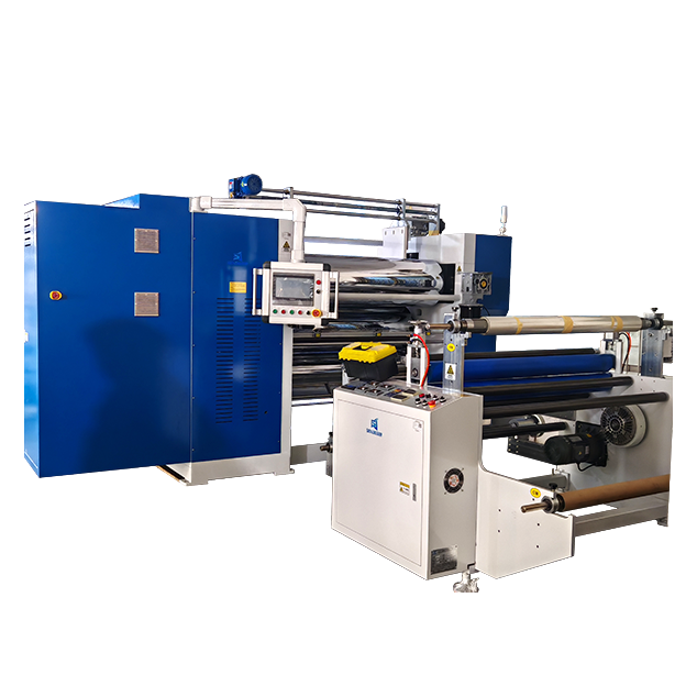 基材放料部分 采用三条放料轴,均带电磁磁粉张力控制器,瓦片式气帐轴。完全满足客户上下PET、中间夹玻纤和厚料挡边海绵等要求。